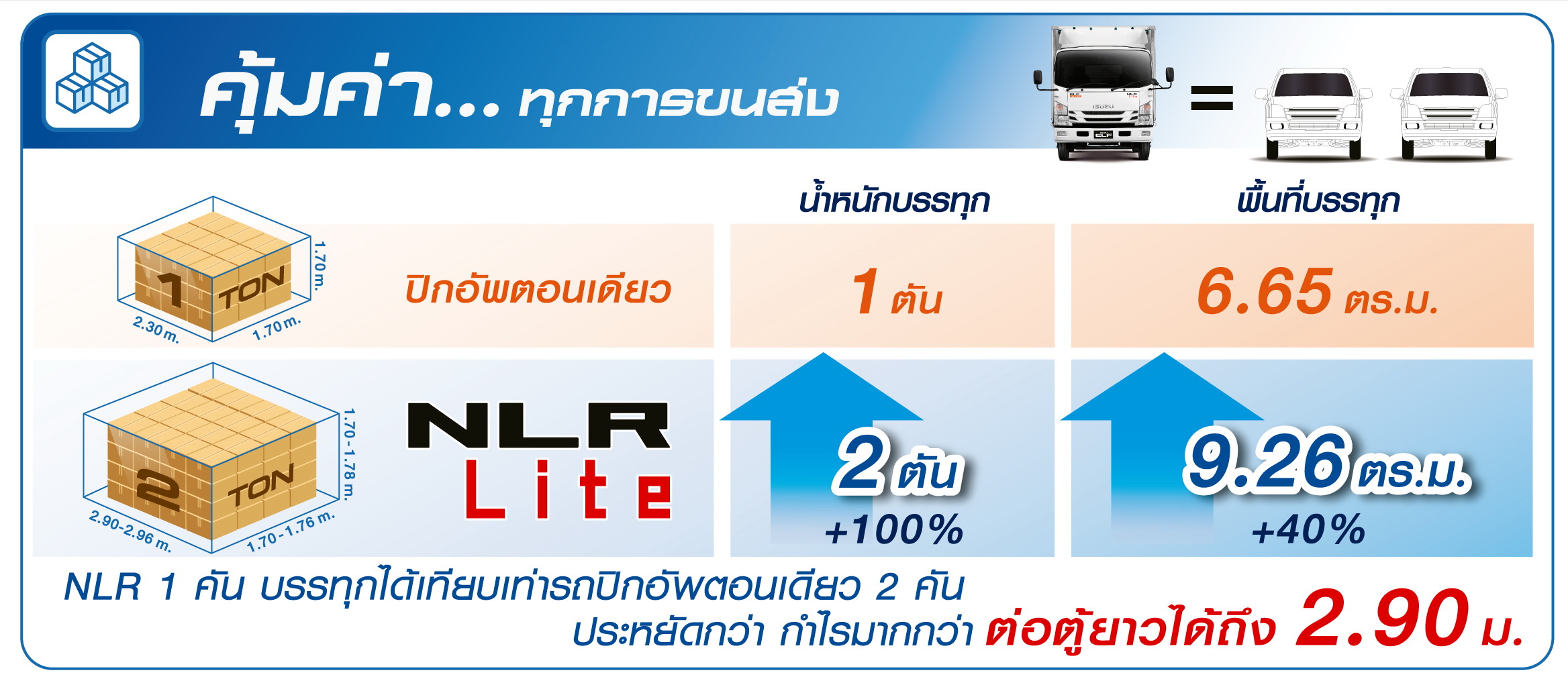 อีซูซุจึงพร้อมเปิดตัวรถบรรทุก 4 ล้อ ตระกูลเอลฟ์ รุ่นใหม่! “NLR Lite” ที่ตอบโจทย์การขนส่งในเมืองได้อย่างเต็มรูปแบบ ให้ความคล่องตัวในการขับขี่สูง ใช้งานได้สะดวกทุกเวลา เนื่องด้วยเป็นรถบรรทุก 4 ล้อที่มีน้ำหนักหัวเก๋ง และแชสซีส์โดยประมาณ 1,720 กิโลกรัม