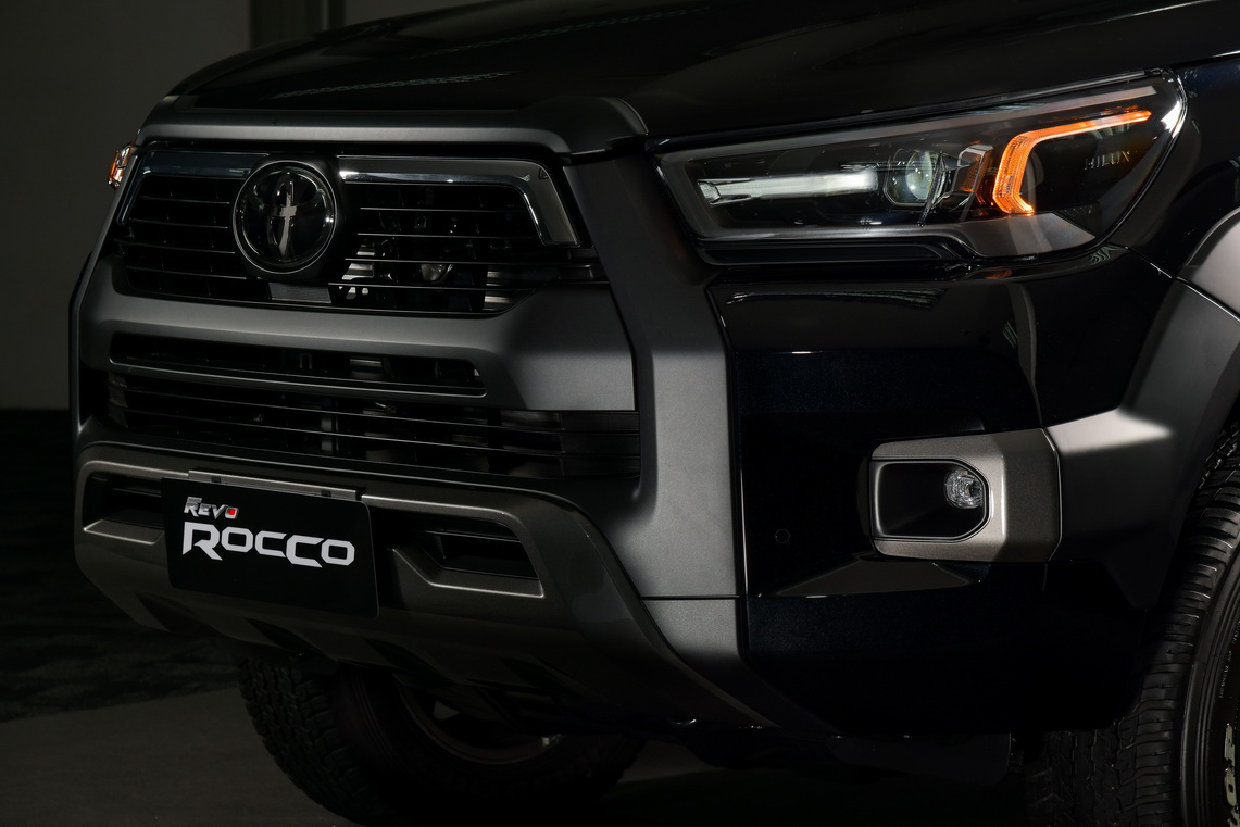 New Toyota Hilux Revo Rocco มีพร้อมชุดตกแต่งพิเศษ อาทิ สปอร์ตบาร์ และล้ออัลลอยดีไซน์พิเศษ พร้อมยางแบบ White Letters ที่เพิ่มความแข็งแกร่ง ดุดัน และความพรีเมียมแล้วนั้น ยังเพิ่มความสุด Exclusive ให้มากยิ่งขึ้นด้วย การออกแบบกระจังหน้าและกันชนหน้าที่เป็นเอกลักษณ์เฉพาะรุ่น Rocco ที่แตกต่างจากรุ่นมาตรฐานอย่างชัดเจน พร้อมกับไฟหน้าดีไซน์ใหม่แบบ Bi-Beam ไฟ LED Daytime Running Light และไฟท้ายแบบ LED Light Guiding เพิ่มความโดดเด่น ในยามค่ำคืน