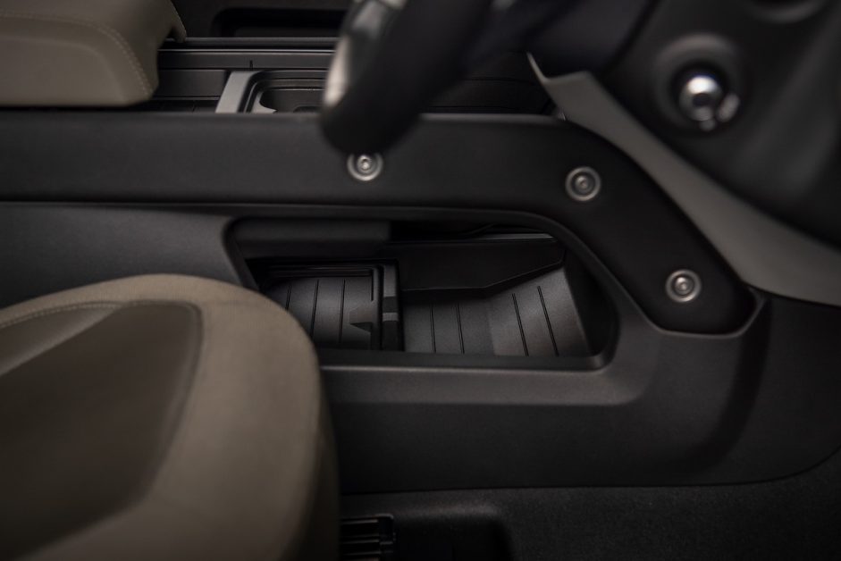 รูปทรงเรียบง่ายของแดชบอร์ดสะท้อนความคลาสสิคของ Defender รุ่นดั้งเดิม ห้องโดยสารใช้วัสดุที่ทนทานและหลังจากเปรอะเปื้อนไปด้วยโคลนระหว่างการบุกป่าฝ่าดง คุณสามารถทำความสะอาดได้อย่างง่ายดายด้วยตัวเอง จอแสดงผลส่วนกลางมาพร้อมกับระบบอินโฟเทนเม้นต์ Pivi Pro เวอร์ชั่นล่าสุด ที่ลดทอนขั้นตอนการเรียกใช้งานระบบต่างๆ ออกไปได้มากกว่า 50% พร้อมรองรับระบบ 5G จึงช่วยให้คุณสามารถอัพเดตซอฟต์แวร์ต่างๆ ของรถได้เองโดยไม่ต้องเข้าศูนย์บริการ โดยระบบจะแจ้งเตือนให้ทราบเมื่อมีอะไรให้อัพเดตเพิ่มเติม