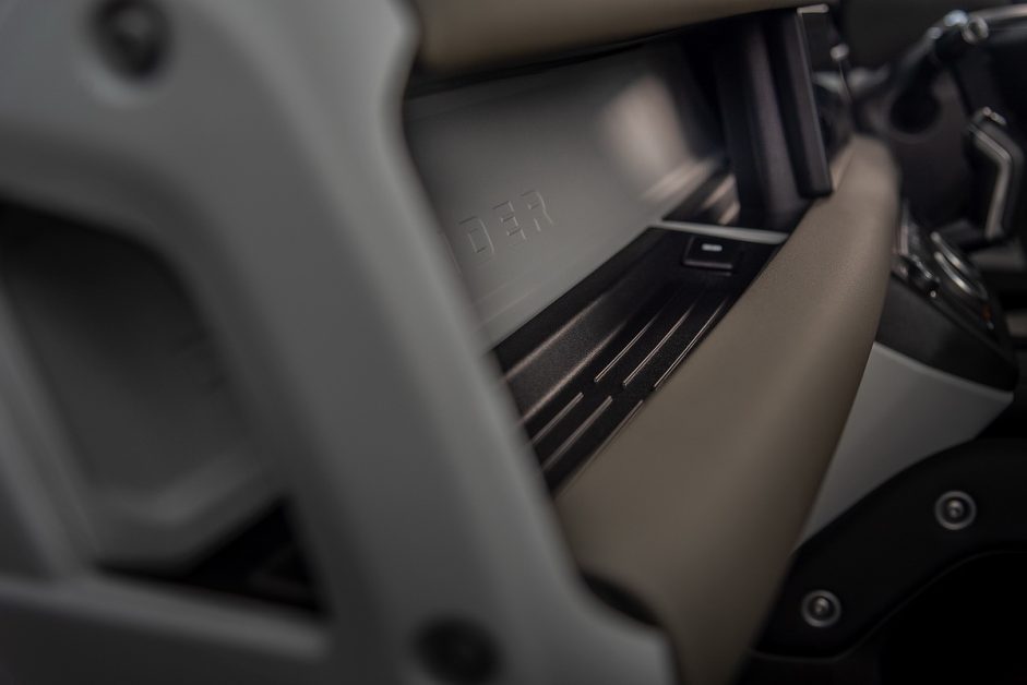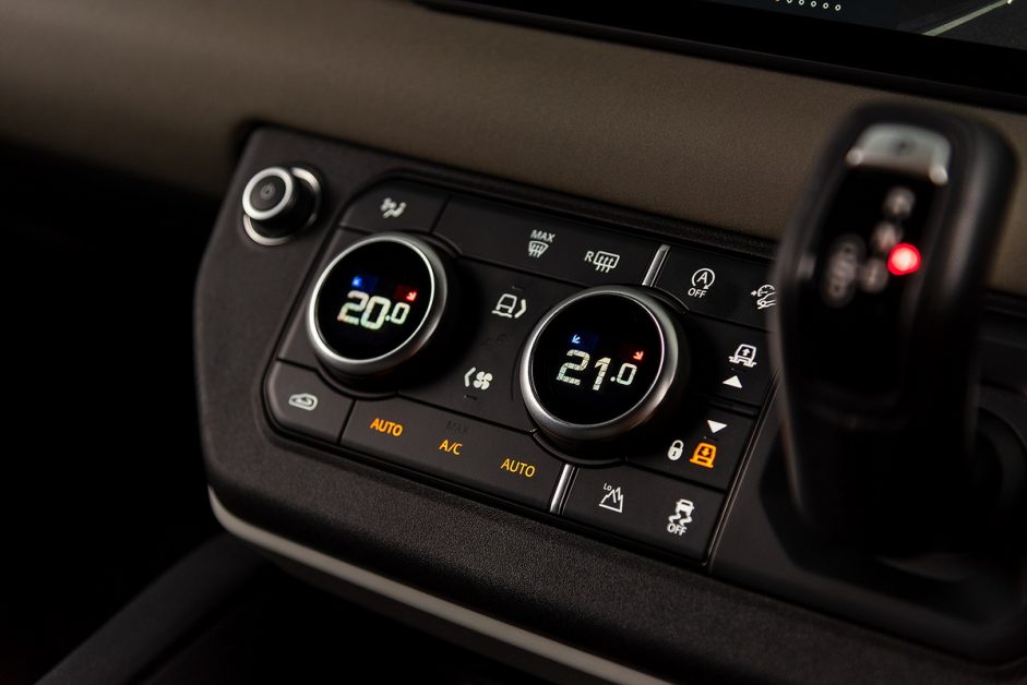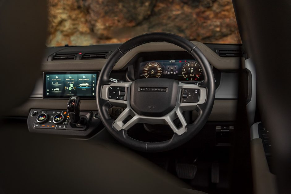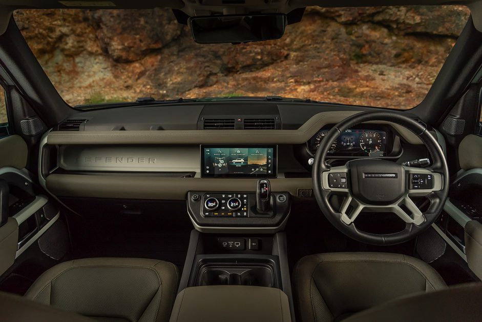 ห้องโดยสารเป็นอีกโซนที่ได้รับการพัฒนาอย่างมาก ภายใต้บรรยากาศที่สะท้อนให้รำลึกถึงอดีตของ Defender รุ่นคลาสสิค แฝงไว้ด้วยเทคโนโลยีล้ำสมัยมากมาย ต้องปรบมือให้กับทีมออกแบบที่สามารถผสมผสานอดีตและปัจจุบันเข้าด้วยกันได้อย่างสอดประสานกลมกลืน จอแบบดิจิตอลเต็มรูปแบบสำหรับผู้ขับ และจอระบบสัมผัสกลางแดชบอร์ดที่มาพร้อมกับระบบ Pivi Pro Infotainment เวอร์ชั่นล่าสุด ใช้งานง่ายและไหลลื่นใกล้เคียงกับสมาร์ทโฟน