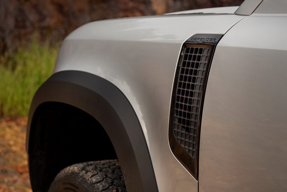 ตัวถังถูกย้ายตำแหน่งให้สูงขึ้น 20 มม. และจัดวางองค์ประกอบต่างๆ ใหม่ จนได้โอเวอร์แฮงก์ หน้า-หลัง ที่สั้นมากๆ นั่นหมายถึง Defender สามารถเข้าหาทางลาดชันถึง 38 องศาได้ โดยไม่สร้างริ้วรอยที่กันชนหน้า ในขณะที่ด้านท้ายทำได้ 40 องศา