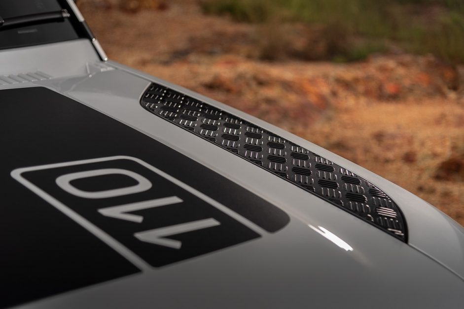 มีการใช้ลวดลายพื้นตีนไก่มาตกแต่งด้านข้างของฝากระโปรง และส่วนที่เลียนแบบช่องระบายอากาศบริเวณที่ปัดน้ำฝน เป็นการดึงเอาบรรยากาศแบบย้อนยุคมาใช้ได้อย่างแนบเนียน