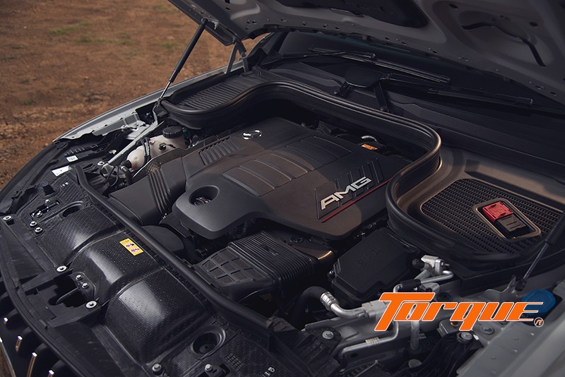 ป้ายชื่อรุ่นใช้ฐานสีแดงเป็นเอกลักษณ์ใหม่ของกลุ่มรถ AMG เช่นกัน ใช้เครื่องยนต์ 6 สูบแถวเรียง เทอร์โบคู่ ยังคงเป็นของเดิม ทว่าได้รับการปรับซอฟต์แวร์และการระบายความร้อนใหม่ จนได้พลังเพิ่มอีก 14 แรงม้า นอกจากนั้น ยังตัดระบบคอมเพรสเซอร์ไฟฟ้า (EQ Boost) ออกไป เนื่องจากได้พลังจากมอเตอร์ไฟฟ้ามาแทนที่ ส่วนเสียงจากปลายท่อไอเสียสามารถปรับระดับความกระหึ่มได้ตามโหมดการขับขี่ที่เลือก… บอกเลยว่าเสียง “หวาน” ไพเราะมาก!