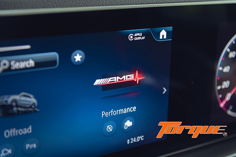 เมนู AMG แสดงข้อมูลด้านสมรรถนะต่างๆ ของรถ ด้วยกราฟฟิกที่งดงามตระการตา (แต่ก็อ่านค่ายากในบางหัวข้อ) นอกจากนั้น ยังมีกราฟฟิกนาฬิกาจับเวลาซึ่งเป็นการร่วมมือกันระหว่าง Mercedes และ IWC Schaffhausen เช่นเคย กราฟิกนาฬิกานี้ได้รับแรงบันดาลใจทั้งในด้านสีสันและรายละเอียดจากรุ่น IWC Pilot’s Watch Chronograph 41 ซึ่งเป็นนาฬิกาโครโนกราฟที่มีชื่อเสียงของ IWC