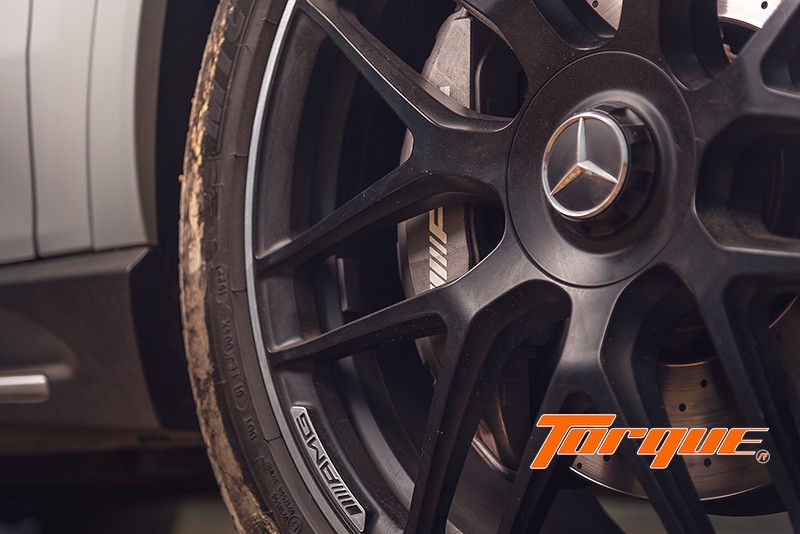 Mercedes ติดตั้งล้อฟอร์จขนาด 22 นิ้ว พร้อมยาง 285/40 และ 325/35 มาให้เป็นอุปกรณ์มาตรฐาน (ออปชั่นในตลาดต่างประเทศ) จานเบรกหน้าขนาด 400 มม. ทำงานร่วมกับคาลิเปอร์ 6 ลูกสูบ ส่วนด้านหลังมีจานขนาด 370 มม. และคาลิเปอร์ 1 ลูกสูบ ติดตั้งไว้ค่อนข้างต่ำเพื่อลดจุดศูนย์ถ่วง ส่วนช่วงล่างถุงลม ‘AMG RIDE CONTROL’ ร่วมด้วยแดมเปอร์ไฟฟ้า ถูกปรับปรุงใหม่สำหรับรุ่น Hybrid โดยเฉพาะ ที่ด้านหน้าใช้ยางกันกระแทก (เมื่อช่วงล่างยุบตัวจนสุด) แบบใหม่ ในขณะที่ด้านหลังใช้แดมเปอร์ใหม่หมด ร่วมด้วยกันโคลงทั้งหน้าและหลังที่ปรับค่าใหม่เช่นกัน ส่วนซอฟต์แวร์ควบคุมการทำงานก็ได้รับการโปรแกรมใหม่ทั้งในส่วนของระบบควบคุมเสถียรภาพการทรงตัว, ระบบขับเคลื่อนสี่ล้อ 4Matic+ และระบบบังคับเลี้ยวด้วยไฟฟ้า