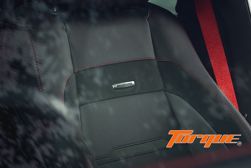 ห้องโดยสารมาพร้อมการตกแต่งพิเศษเฉพาะเกรด AMG นั่นรวมไปถึงชิ้นส่วนคาร์บอนไฟเบอร์เงาวับ, หลังคากระจก Panoramic, เบาะทรงสปอร์ตหุ้มด้วยหนังแท้สลับหนังกลับ, เข็มขัดนิรภัยและตะเข็บด้ายสีแดง และพวงมาลัยเจเนอเรชั่นล่าสุด ซึ่งมาพร้อมกับชุดควบคุมระบบสัมผัสที่ก้านพวงมาลัยและปุ่มหมุนทรงกลมพร้อมหน้าจอดิจิทัลกดได้ ที่ด้านล่างสำหรับเลือกโหมดการขับขี่ (ฝั่งขวา) และ Shortcut สั่งการฟังก์ชั่นต่างๆ เกี่ยวกับการขับขี่ (ฝั่งซ้าย) อาทิ การเปลี่ยนเกียร์แบบ Manual, ปรับช่วงล่าง, เสียงท่อไอเสีย, เข้าเมนู AMG เป็นต้น