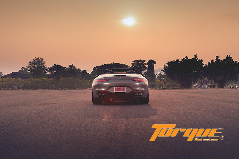 โรดสเตอร์คันงามสามารถเร่งออกจากโค้งได้รวดเร็วน่าเหลือเชื่อ ต้องปรบมือให้กับเทอร์โบที่สืบทอดเทคโนโลยีมาจากรถแข่ง Mercedes F1 ที่สร้างแรงบูสต์ได้ตั้งแต่รอบต่ำ บวกกับชุดเกียร์อัตโนมัติ 9 จังหวะ “MCT” ที่ใช้คลัตช์หลายแผ่นแทนการใช้ทอร์คคอนเวอร์เตอร์เหมือนเกียร์อัตโนมัติทั่วไป จึงเปลี่ยนเกียร์ได้ฉับไวระดับ 100 มิลลิวินาที