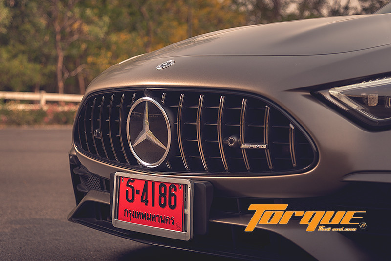 คันทดสอบของเรามาพร้อมกับตัวถังสี MANUFAKTUR Monza Grey Magno ซึ่งเป็นสีพิเศษเฉพาะรุ่น SL เท่านั้น ร่วมด้วยการติดตั้ง AMG Night Package ที่เปลี่ยนชิ้นส่วนโครเมี่ยมต่างๆ เป็นสีดำเงา อาทิ ลิ้นหน้า, กระจกมองข้าง, ส่วนตกแต่งบริเวณสเกิร์ตข้าง, ดิฟฟิวเซอร์, ปลายท่อไอเสีย เป็นต้น ในขณะที่ตัวอักษรและตราสัญลักษณ์ต่างๆ เป็นโครเมี่ยมสีดำ