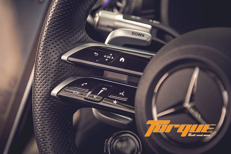 คันทดสอบติดตั้งแพคเกจ AMG DYNAMIC PLUS มาให้ด้วย นั่นหมายถึงนอกจาก 5 โหมดมาตรฐาน (Slippery, Comfort, Sport, Sport+ และ Individual) แล้ว คุณยังได้โหมดพิเศษ “RACE” เพิ่มมาอีกด้วย ที่โหมดนี้ ระบบจะปรับให้รถพร้อมสำหรับการขับขี่เพื่อแข่งขันมากขึ้น ด้วยเครื่องยนต์และคันเร่งที่ตอบสนองฉับไวเป็นพิเศษ นอกจากนั้น ในแพคเกจยังมาพร้อมกับจุดยึดแท่นเครื่องแบบไดนามิกส์ ซึ่งสามารถแปรผันความยืดหยุ่นได้ตามรูปแบบการขับขี่ จากนุ่มนวลเพื่อการขับขี่ปกติไปจนถึงขึงตึงสำหรับใช้ในสนามแข่ง, เฟืองท้ายพร้อมลิมิเต็ดสลิปควบคุมด้วยอิเลกทรอนิกส์, ช่วงล่างเตี้ยกว่าเดิม 10 มม. และคาลิเปอร์เบรกสีเหลือง