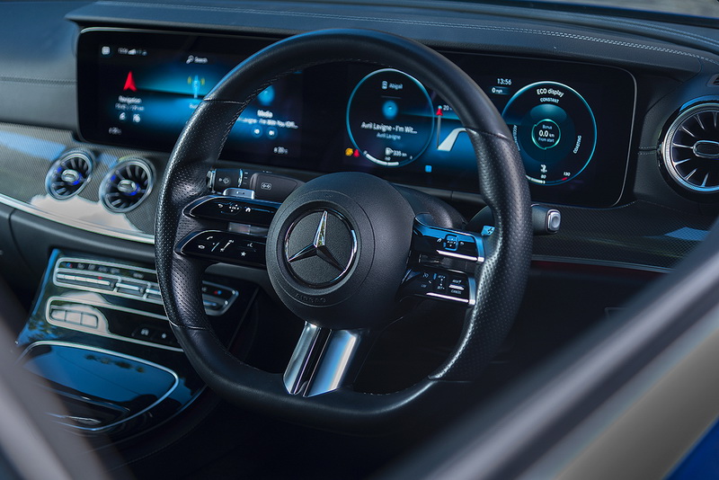 แต่นั่นก็เป็นข้อดีเช่นกัน… ตัวถังที่บิดตัวน้อยลงหมายถึงการตอบสนองที่ดียิ่งขึ้นขณะเข้าโค้ง เมื่อส่ง E200 เข้าสู่ทางคดเคี้ยว มันจะเผยความสามารถที่ซ่อนอยู่ออกมา ปรับสู่โหมด Sport+ เพื่อเพิ่มน้ำหนักพวงมาลัยและการตอบสนองของคันเร่งและเกียร์ เหยียบเบรกเพื่อลดความเร็วให้เหมาะสม