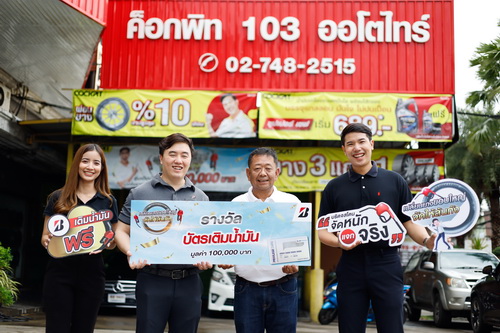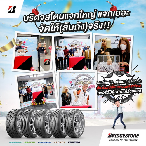 บริษัท บริดจสโตนเซลส์ (ประเทศไทย) จำกัด จับรางวัลครั้งที่ 1 สำหรับโปรโมชั่นสุดยิ่งใหญ่ “BRIDGESTONE เปลี่ยนยางขอบใหญ่ จัดให้ล้นถัง” จัดหนัก แจกจริง!! มอบรางวัลบัตรเติมน้ำมันให้ลูกค้า ผู้โชคดีที่ซื้อและเปลี่ยนยางบริดจสโตน ขนาด 17 นิ้วขึ้นไป และลงทะเบียนรับประกันยาง