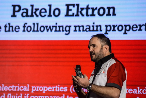Mr.Diego Vaccaro, Export Manager จาก Pakelo ประเทศอิตาลี กล่าวว่า Pakelo Ektron เป็นน้ำมันหล่อลื่นสังเคราะห์สมรรถนะสูงที่ผลิตขึ้นโดยเฉพาะสำหรับระบบขับเคลื่อนไฟฟ้า (eAxles) ของรถยนต์ไฮบริด (HEV, PHEV, REEV) และรถยนต์ไฟฟ้าเต็มรูปแบบ (BEV, FCEV) ถือเป็นน้ำมันอเนกประสงค์ในระบบขับเคลื่อนไฟฟ้า (eAxles) ของผู้ผลิตต่างๆ