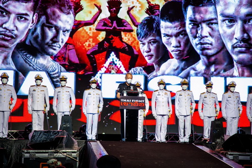 โดยมีคุณพิพัฒน์ รัชกิจประการ รัฐมนตรีว่าการกระทรวงการท่องเที่ยวและกีฬา เปิดกรวยถวายราชสักการะ และคุณสุวัจน์ ลิปตพัลลภ ประธานที่ปรึกษาคณะกรรมการอำนวยการจัดการแข่งขัน THAI FIGHT กล่าวถวายรายงาน ก่อนเข้าสู่พิธีอัญเชิญถ้วยพระราชทานในพระบาทสมเด็จพระเจ้าอยู่หัว และสมเด็จพระนางเจ้าฯ พระบรมราชินี วางหน้าพระบรมฉายาลักษณ์