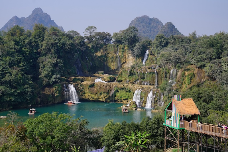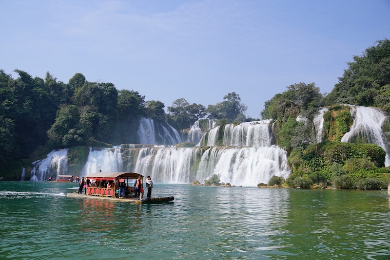 กับกิจกรรมแรก ล่องแพไม้ไผ่ เพื่อชื่นชมความอลังการของน้ำตกเต๋อเทียน ซึ่งเป็นน้ำตกที่ใหญ่ที่สุดในเอเชีย ตั้งอยู่ท่ามกลางป่าเขาอุดมสมบูรณ์ที่เชื่อมระหว่างชายแดนจีน-เวียดนาม