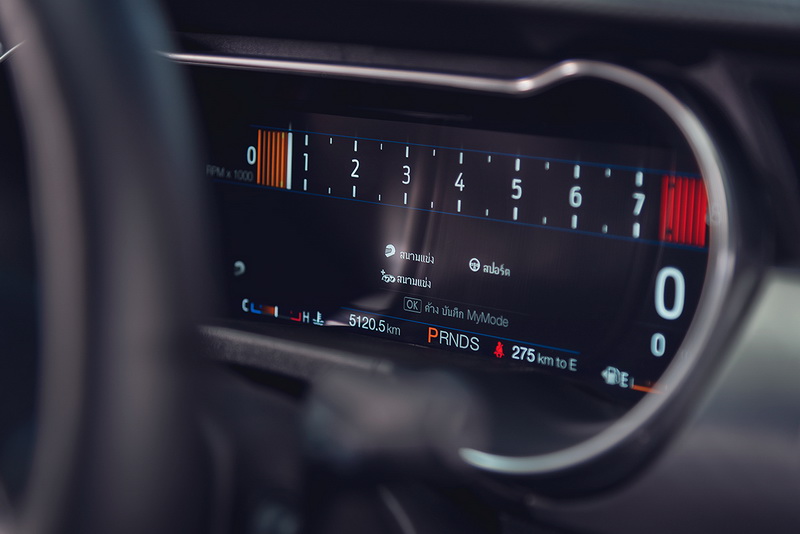 คุณจะสัมผัสได้ถึงน้ำหนักที่ตึงมือขึ้น ออกแรงเพิ่มอีกหน่อยเพื่อยื้อกับแรง G ที่เกิดขึ้นจากการเหวี่ยงเข้าโค้ง S แคบๆ กระทั่งเปิดจนเห็นทางตรง กดคันเร่งให้จมพื้นแล้วกระโจนสู่โค้งถัดไป Mustang จะพยายามดื้อดึงกับคุณในสถานการณ์ที่ปราศจากระบบช่วยเหลือใดๆ เช่นนี้