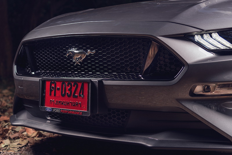 นอกจากนั้น ปัจจุบันยังมีสีเทา “Carbonize Grey” เหมือนคันทดสอบของเรา มาให้เลือกเพิ่มเติมอีกด้วย ที่ผมชอบที่สุดก็คือ ทั่วทั้งตัวถังภายนอกไม่มีโลโก้ Ford ให้เห็น (โอเค… มีอยู่บนกระจกหน้าที่นึง แต่ก็อยู่หลังฟิล์มดำ) ไม่มีแม้กระทั่งอักษร Mustang จะมีก็เพียงแค่สัญลักษณ์รูปม้าเท่านั้น