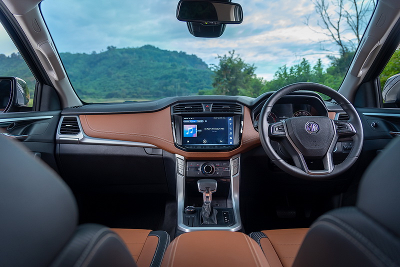 อย่างที่ว่าไว้ นี่คือรุ่นท็อปสุดในตระกูล MG EXTENDER ฉะนั้นความ “ครบเครื่อง” ในออปชัน จึงเป็นประเด็นหลักที่น่าสนใจ ไล่รองลงมาจากขนาดของตัวถังแบบ 4 ประตู (Double Cab) ที่สร้างความสะดุดตา ผ่านความใหญ่โต แต่ก็มีความโฉบเฉี่ยวเข้ามาช่วยลดความรู้สึก “เทอะทะ” ได้อย่างมีเหตุมีผล