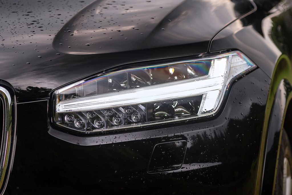 Volvo XC90 Inscription ที่อยู่กับเรานั้นมีชื่อเต็มๆ ว่า Volvo XC90 T8 Twin Engine AWD Inscription ซึ่งพกพาสัญชาติสวีเดน แห่งดินแดนไวกิ้งมาเต็มกระเป๋า สังเกตได้จากงานดีไซน์ของชุดไฟ Daytime Running Lights แบบ LED ที่หยิบยืมรูปแบบ “ค้อนแห่งเทพเจ้าสายฟ้าธอร์” (Thor Hammer) มาเป็นแรงบันดาลใจ ลงตัวกับออพชั่นมาตรฐานที่จัดมาให้ เช่น