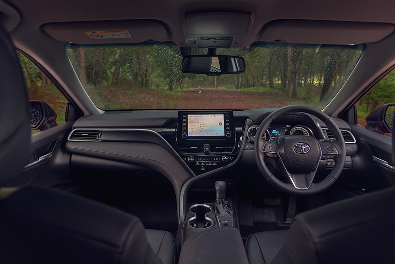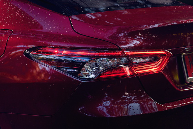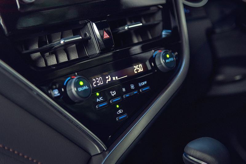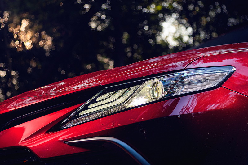 สำหรับ Toyota Camry แม้จะมีตัวถังที่ใหญ่โตสมฐานะ Mid-Size Sedan แต่ด้วยการหยิบจับความสปอร์ตมาแต่งแต้มเข้าไป ทำให้อารมณ์ความปราดเปรียวเกิดเป็นภาพที่ชัดเจนมากขึ้น เช่น ดีไซน์ใหม่จากมุมมองด้านหน้า ทั้งในส่วนของชุดกันชน, กระจังหน้าชิ้นบนบริเวณตราสัญลักษณ์ Toyota ก็มีการเสริมคิ้วสีเทาด้านมาให้