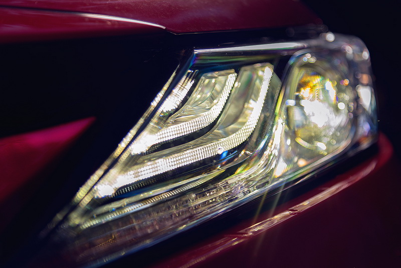 ส่วนมุมกันชนหน้า คือ ตำแหน่งของช่องดักอากาศ ที่ขยายให้กว้างขึ้น ส่งผลให้ตัวรถดูกว้าง และมีมิติมากขึ้น เสริมด้วยความโดดเด่นจากชุดไฟหน้า Projector Lens แบบ Bi-LED พร้อมไฟ Daytime Running Lights แบบ LED, ระบบเปิด-ปิดไฟหน้า และปรับสูง-ต่ำอัตโนมัติ ตลอดจนระบบไฟ Follow-Me-Home และไฟตัดหมอกแบบ LED