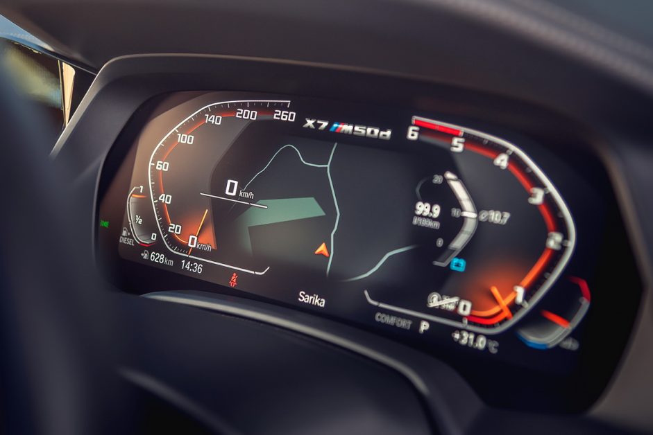 ซึ่งด้วยรายละเอียดด้านสมรรถนะที่ยั่วใจขนาดนี้ ทำให้เราไม่อาจปฏิเสธได้เลยว่าอยากใช้เวลาให้คุ้มค่าที่สุดกับเจ้า BMW X7 M50d เพราะงั้นปุ่ม Start ที่ตกแต่งด้วยผลึกแก้ว Crafted Clarity จึงถูกใช้งานเป็นอย่างแรก ตามด้วยชุดหัวเกียร์ที่ตกแต่งด้วยผลึกแก้ว Crafted Clarity เพื่อเปลี่ยนตำแหน่งจาก P เป็น D ก่อนจะเคลื่อนตัวช้าๆ เพื่อทำความคุ้นเคยกับตัวรถพิกัดยักษ์ท่ามกลางสภาพการจราจร