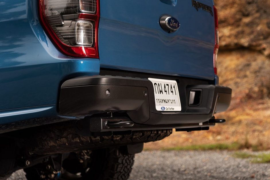 ส่วนด้านหลังแม้จะดูไม่ “เด่น” เท่าไหร่ แต่ก็ยังมีความน่าสนใจ ด้วยรายละเอียดของชุดกันชนท้ายดีไซน์ใหม่ ที่เสริมชุดตะขอเกี่ยวมาให้ 2 ชุด สำหรับการลากจูง เช่นเดียวกับอารมณ์ของห้องโดยสารภายใน ที่หลักๆ ยังคงมีความเป็น Ford Ranger ให้ได้สัมผัส