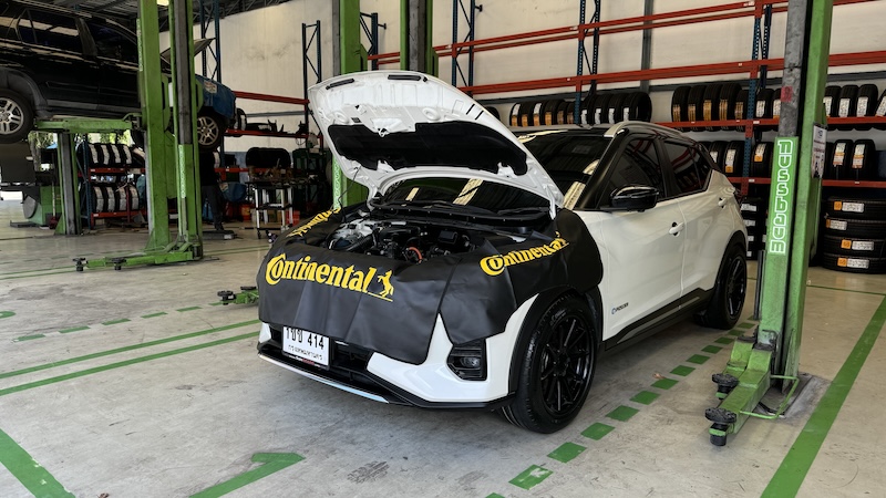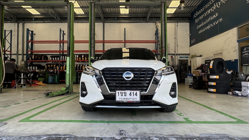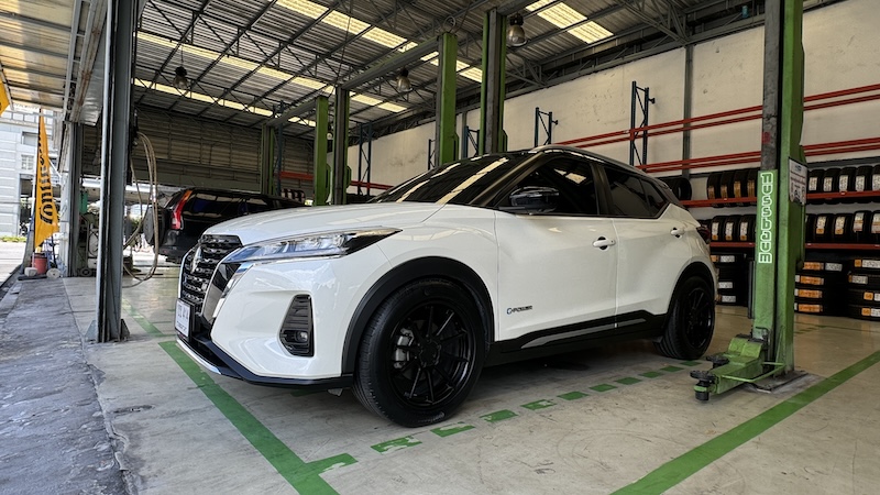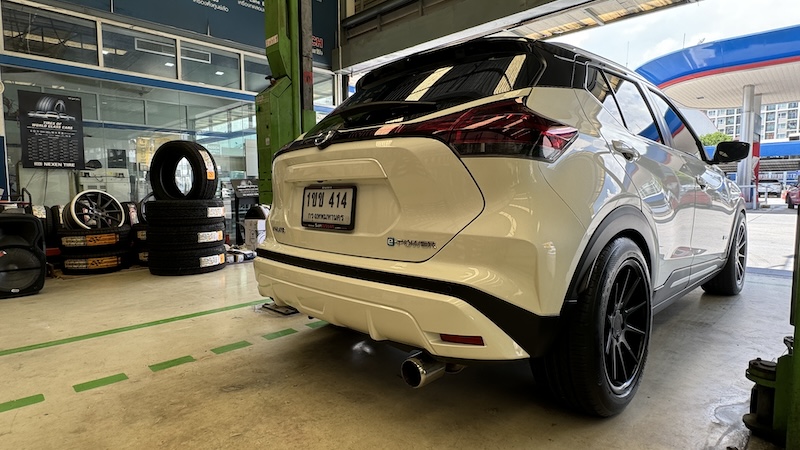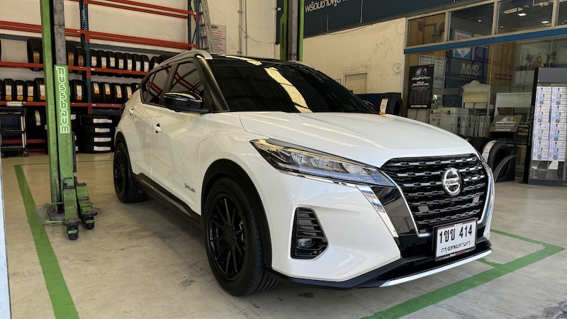 โดย NISSAN KICKS คันนี้ได้มีการเปลี่ยนล้อมาเป็นขอบ 18 นิ้ว จากเดิม 17 นิ้ว ยางที่เรานำมาเปลี่ยนเลยมีขนาด 235 /50 /18 นิ้ว ซึ่งก็ถือว่าฟิตเม้นท์ของรถดูลงตัวทีเดียว ระหว่างชุดยางกับซุ้มล้อ ซึ่งจากการที่ลองใช้ก็ถือว่ามีความนิ่มนวลดีทีเดียว การวิ่งผ่านรอยต่อสะพานก็ถือว่าทำได้น่าประทับใจ แรงกระแทกจากช่วงล่างดูเหมือนจะดูดซับได้เบาลง