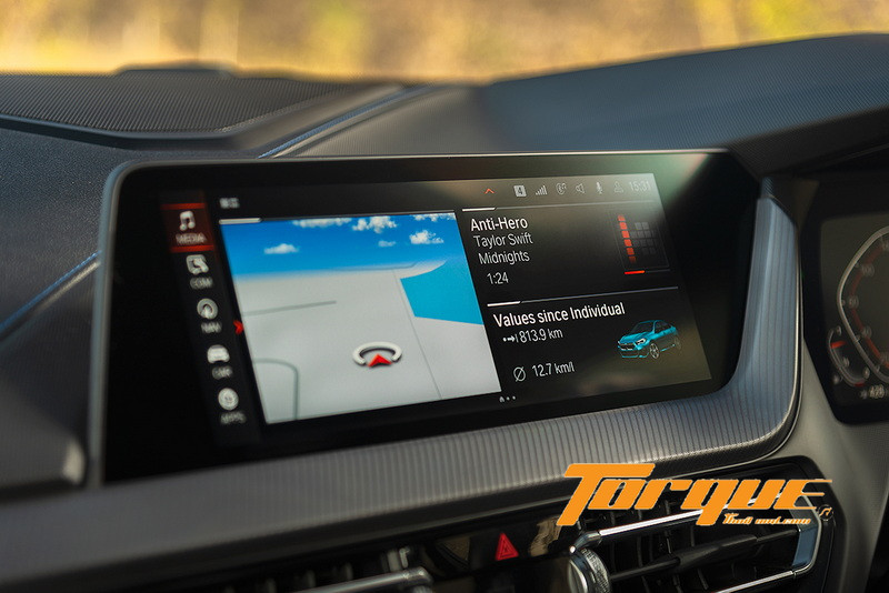แม้จะมีขนาดไม่ใหญ่นัก (10.25 นิ้ว) แต่จอแสดงผลส่วนกลาง ‘Control Display’ ก็ได้รับการออกแบบ User Interface มาเป็นอย่างดี จึงใช้งานได้ง่าย ไม่ว่าจะด้วยการสัมผัสหน้าจอ หรือควบคุมผ่าน iDrive ที่คอนโซลกลาง ด้านบนของปุ่มแบบหมุนเป็นระบบสัมผัสทำหน้าที่เป็น Touch Pad คล้ายกับที่มีอยู่ในโน้ตบุ๊ค ทั้งหมดทำงานด้วยระบบปฏิบัติการล่าสุดเวอร์ชั่น 7.0 ของ BMW พร้อมฮาร์ดไดร์ฟในตัว และระบบเสียง BMW HiFi ที่มาพร้อมกับลำโพง 10 ตัว กับเพาเวอร์แอมป์กำลังขับ 205 วัตต์