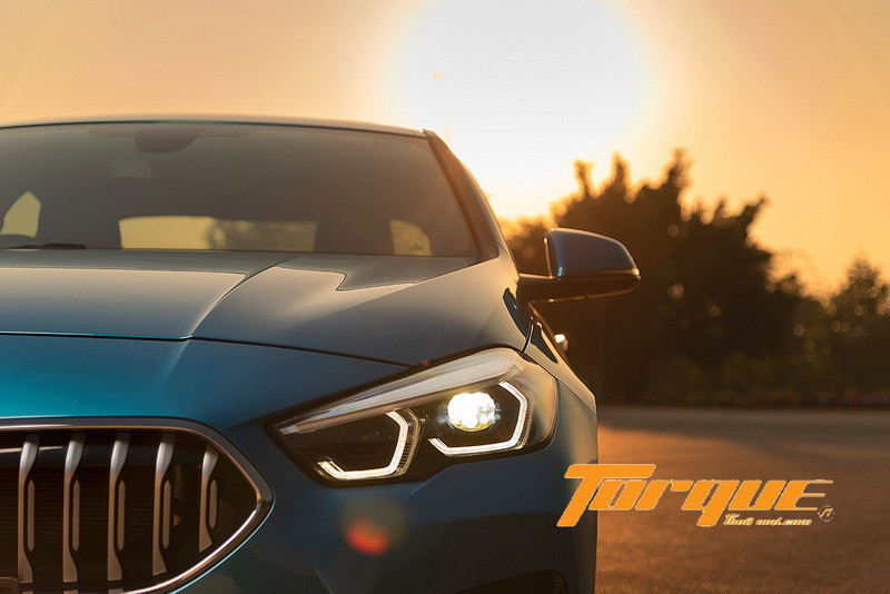 ไฟหน้าเป็น LED ทั้งหมด พร้อม DRL ทรงหกเหลี่ยมช่วยตอกย้ำความเป็น BMW ได้ทันทีที่เห็น ส่วนไฟเลี้ยวเป็นเส้นคิ้วคาดเต็มความยาวด้านบนของชุดไฟ ทำให้ภาพรวมของด้านหน้ารถดูกว้างขึ้น ไฟตัดหมอกก็เป็น LED เช่นกัน