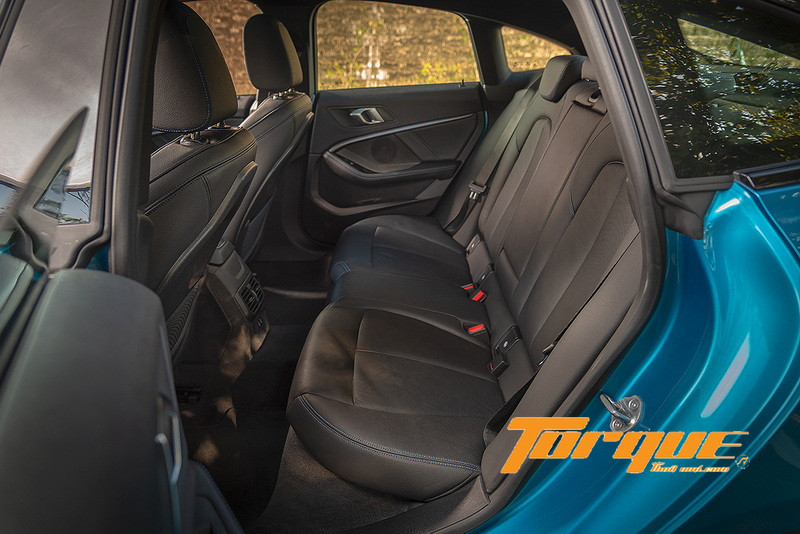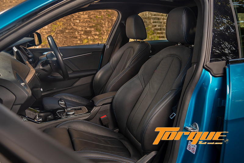 เบาะนั่งแบบสปอร์ต เดินด้ายสีน้ำเงินและแทรกแถบ 3 สี สัญลักษณ์ของ M Sport นั่งสบายและโอบกระชับลำตัว เบาะหลังมีพื้นที่วางขาเหลือเฟือ ขณะที่พื้นที่เหนือศีรษะอาจมีปัญหากับคนตัวสูง เพราะแม้หลังคาพาโนรามิกจะทำให้ได้ความสูงเพิ่มขึ้น 14 มม. ทว่าพนักพิงที่วางไว้หลังเสา C จึงตรงกับช่วงลาดของหลังคาพอดี ห้องเก็บสัมภาระท้ายรถมีความจุ 430 ลิตร สามารถใส่กระเป๋าใบใหญ่ๆ 2 ใบ ได้สบายๆ นอกจากนั้น ยังสามารถพับเบาะหลังเพื่อเพิ่มพื้นที่เก็บของตามแนวยาวได้อีกด้วย