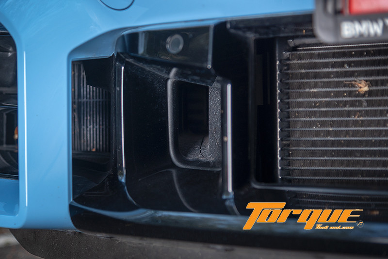 เกือบทั้งหมดของพื้นที่ด้านหน้ารถยกให้กับการรับอากาศเข้าสู่แผงระบายความร้อนต่างๆ ของเครื่องยนต์ ทุกช่องไม่ใช่เพื่อความสวยงามแต่มีหน้าที่เฉพาะเจาะจงทั้งสิ้น ลองมองเข้าไปใกล้ๆ คุณจะเห็นปล่องบังคับทิศทางลมและแผงรังผึ้งที่อัดแน่นเต็มพื้นที่… เราเสียใจอย่างสุดซึ้งต่อแมลงที่ต้องเสียชีวิตอยู่ด้านใน