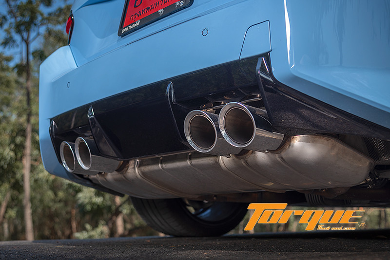 ท้ายรถที่กำยำจากโป่งหลังขนาดใหญ่และกันชนที่เน้นเหลี่ยมสันคมชัด สปอยเลอร์ขนาดเล็กทำหน้าที่สร้างแรงกดให้กับล้อคู่หลัง ขณะที่ดิฟฟิวเซอร์ขนาดใหญ่ช่วยเรียงอากาศที่วิ่งมาจากให้ท้องรถ และลึกเข้าไปด้านในคือหม้อพักขนาดมหึมาของชุดท่อไอเสียที่สามารถปรับความดังของเสียงได้ ร่วมด้วยปลายท่อคู่ ซ้าย-ขวา ที่ช่วยบ่งบอกให้รถคันที่กำลังตามหลังรู้เป็นนัยว่า คิดให้ดีหากจะลองดีกับมัน