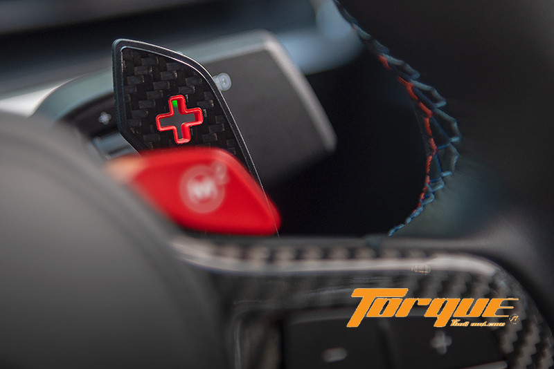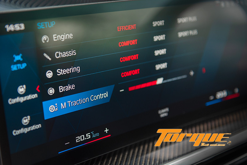 ระบบบังคับเลี้ยวที่แปรผันทั้งน้ำหนักและอัตราทดตามความเร็ว ตอบสนองได้ไร้ที่ติ ทั้งสื่อสาร, ฉับไว, เฉียบคม และให้อรรถรสการขับขี่แบบสปอร์ตเต็มพิกัด สามารถเลือกได้ 2 โหมดคือ Comfort ที่เบาแรงแต่ยังคงตอบสนองแม่นยำ และ Sport ซึ่งขึงตึงพออสมควร ทว่ากลับกลมกล่อมอย่างยิ่งเมื่อขับขี่ในบทบู๊ล้างผลาญ วงพวงมาลัยขนาดอวบอ้วนกำลังดี มาพร้อมปุ่มทางลัด “M1” และ “M2” สำหรับเข้าสู่โหมด Individual ที่คุณปรับตั้งไว้ล่วงหน้าได้ทันที