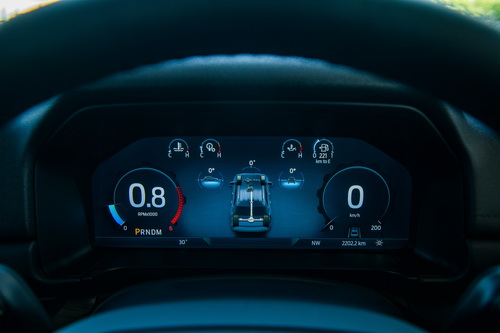และเมื่อถึงเส้นทางออฟโรด เราได้ลองฟังก์ชั่น โหมดทางลื่น: ปรับการทำงานของเครื่องยนต์ เกียร์ และระบบควบคุมการยึดเกาะถนน เพื่อลดโอกาสที่ล้อจะหมุนฟรี ป้องกันการลื่นไถล)