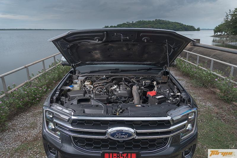 ส่วนรุ่นท็อปสุด Titanium+ จะมีหัวใจหลักในการขับเคลื่อน คือ เครื่องยนต์ 2.0 ลิตร เทอร์โบคู่ ให้กำลังสูงสุด 210 แรงม้า พร้อมแรงบิดสูงสุด 500 นิวตันเมตร แยกเป็นรุ่นขับเคลื่อน 2 ล้อ เกียร์อัตโนมัติ SelectShift 10 สปีด และขับเคลื่อน 4 ล้อ เกียร์อัตโนมัติ E-Shifter 10 สปีด พร้อมเขี้ยวเล็บครบเครื่อง ตั้งแต่โหมดการขับขี่ 2H, 4H และ 4L ไปจนถึงฟังก์ชัน Drive Modes ให้เลือกปรับเปลี่ยนตามสถานการณ์