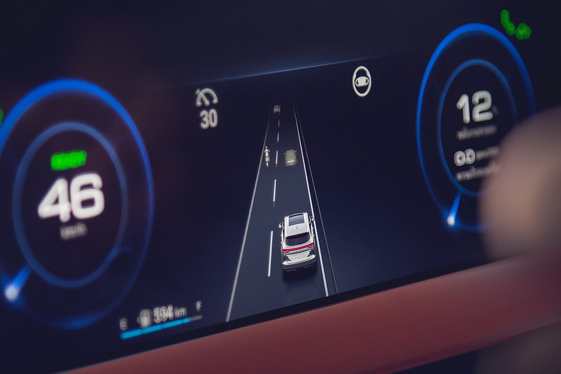 ซึ่งต่างจากระบบของรถรุ่นอื่นๆ ที่จะเบรกให้มีระยะห่างเช่นเดียวกับตอนตรวจเจอรถยนต์คันหน้า นับเป็นระบบที่ทำงานได้ชาญฉลาดทีเดียว ส่วนการรักษาระยะห่างยังคงเหลือพื้นที่หน้ารถมากเกินไป และการเบรกก็ไม่นุ่มนวลนัก ซึ่งก็อยู่ในเกณฑ์ที่ใกล้เคียงกับระบบของรถรุ่นอื่นๆ ในคลาสเดียวกัน ที่ห่างและเบรกค่อนข้างแรงไม่ต่างกันนัก