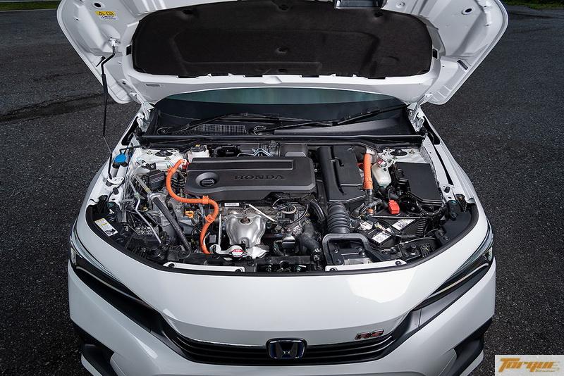โดย Honda Civic e:HEV RS จะมากับเครื่องเบนซิน 4 สูบ 16 วาล์ว DOHC มีกำลังสูงสุด 141 แรงม้า ที่ 6,000 รอบต่อนาที และแรงบิดสูงสุด 182 นิวตันเมตร ที่ 4,500 รอบต่อนาที เสริมแรงด้วยมอเตอร์ไฟฟ้า 2 ตัว ซึ่งใช้พลังงานจาก แบตเตอรี่ลิเธียม-ไอออน คือ