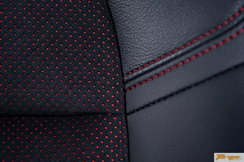 ด้านภายในเน้นความสปอร์ต ด้วยสไตล์การตกแต่งโทนสีดำ พร้อมการเลือกใช้วัสดุหนังกลับ และวัสดุหนังสังเคราะห์ ตกแต่งด้วยด้ายสีแดง ตลอดจนแป้นคันเร่ง และเบรกแบบสปอร์ต ตามด้วย “ออปชั่น” ที่แน่นหนาตามสไตล์ตัวท็อป เช่น ระบบสตาร์ทเครื่องยนต์ พร้อมเครื่องปรับอากาศด้วยกุญแจรีโมท (Remote Engine Start), ระบบสตาร์ทเครื่องยนต์แบบอัจฉริยะ (One Push Ignition System),