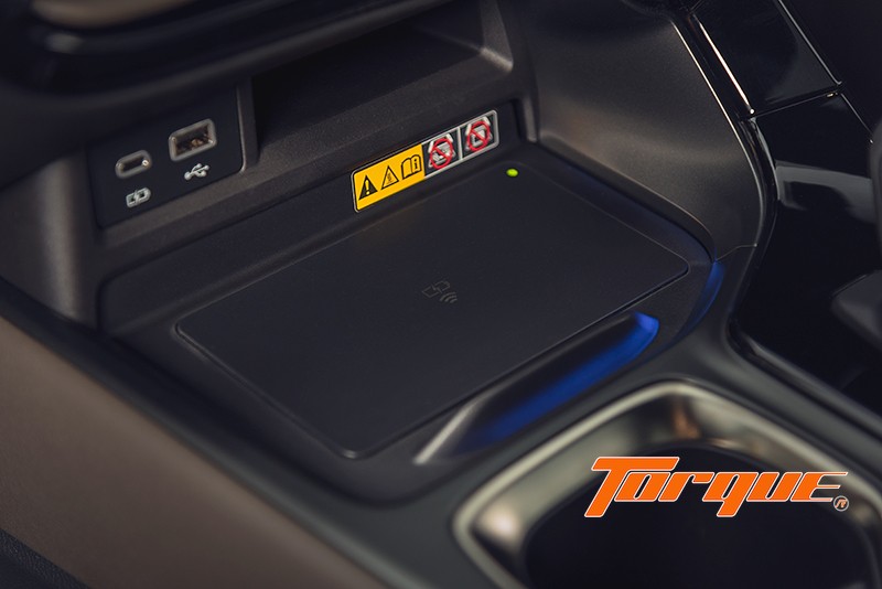 รองรับการเชื่อมต่อแบบไร้สายสำหรับ iOS แต่สำหรับ Android ยังจำเป็นต้องเสียบสาย มาพร้อมแท่นชาร์จไร้สายที่ชาร์จได้เร็วกว่าเดิมถึง 50% เมื่อเทียบกับรุ่นที่แล้ว มีช่องเก็บของซ่อนอยู่ใต้ตัวถาด สามารถเลื่อนเปิดขณะกำลังชาร์จโทรศัพท์อยู่ นอกจากนั้น ยังมีช่อง USB อีก 4 ช่อง (ของผู้โดยสารหน้าและหลัง ตำแหน่งละ 2 ช่อง) โดย 3 ช่องในนั้นเป็นแบบ Type C 15 วัตต์ ส่วนอีกช่องเป็น USB A จึงใช้เพื่อเชื่อมต่อข้อมูลได้ด้วย