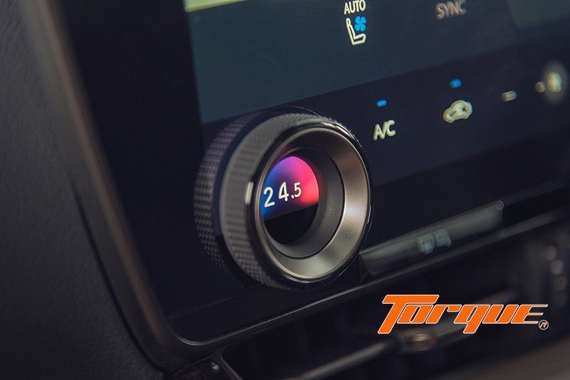 ระบบปรับอากาศใช้คอมเพรสเซอร์แบบทำงานด้วยไฟฟ้า และสามารถสั่งให้รถเปิดระบบปรับอากาศไว้ล่วงหน้าได้ผ่านแอปฯ Lexus Link มาพร้อมกับระบบฟอกและกรองอากาศ Nano-e และระบบตรวจจับความชื้นที่สามารถป้องกันการเกิดฝ้าบนกระจกหน้าได้ด้วย ระบบควบคุมอุณหภูมิ ‘S-Flow’ ทำงานอย่างชาญฉลาด สามารถตรวจจับได้ว่ามีผู้นั่งอยู่ที่เบาะใดของรถบ้าง และจะทำการควบคุมอุณหภูมิโดยโฟกัสได้ที่ผู้นั่งตำแหน่งนั้นๆ โดยนำข้อมูลของอุณหภูมิทั้งในและนอกห้องโดยสาร ตลอดจนทิศทางและความแรงของแสงแดด มาประมวลผลเพื่อให้ได้มาซึ่งอุณหภูมิที่แม่นยำตามที่แต่ละคนตั้งเอาไว้ ตัวปุ่มควบคุมถูกแยกออกมาจากจอแสดงผลส่วนกลางเพื่อความสะดวกในการใช้งานโดยไม่ต้องละสายตาจากถนนนานๆ นอกจากนั้น หากสังเกตดีๆ จะเห็นว่าจอบอกอุณหภูมิอยู่ในระนาบเดียวกับจอหลัก จนดูเหมือนแค่เอาปุ่มหมุนมาครอบทับไปบนจอเท่านั้น