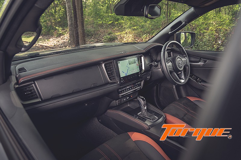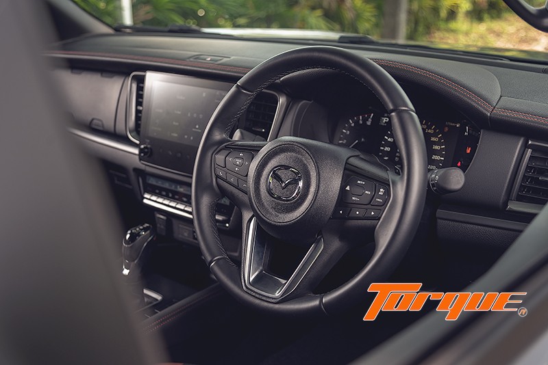 ไม่เพียงเท่านั้น แต่ยังรวมถึงการตอบสนองที่เฉียบคมของระบบพวงมาลัย ที่ลงตัวกับ “สมรรถนะ” และ “ทัศนวิสัย” อันยอดเยี่ยมจากมิติตัวถังแบบเดียวกับรุ่นสูงสุดขับเคลื่อน 4 ล้อ ร่วมกันสร้างความเป็น รถปิกอัพขับสนุกให้ Bold New Mazda BT-50 รุ่น DBL 3.0 XTR HI-RACER 6AT แสดงออกมาได้อย่างชัดเจนมากขึ้น
