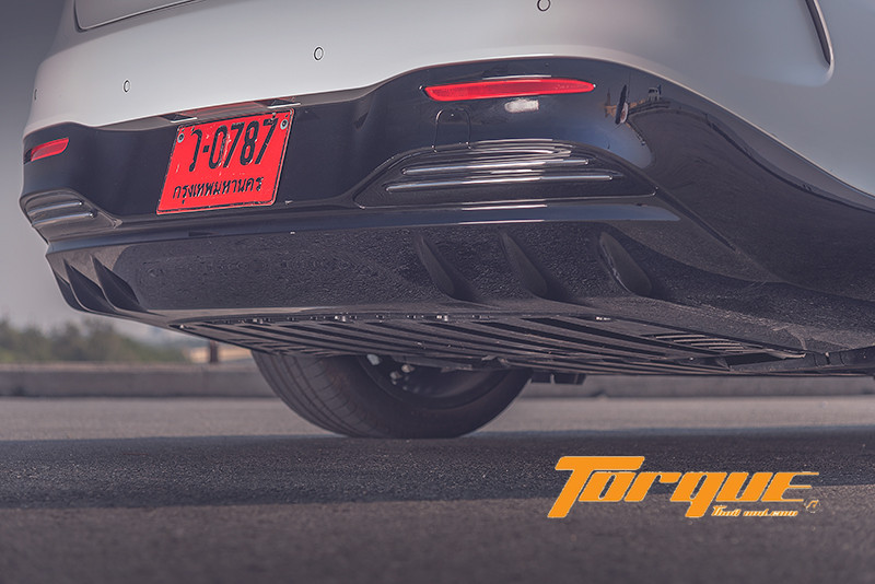 ส่วนท้ายที่โค้งมนและลาดเอียงสไตล์คูเป้ ถูกเติมเต็มด้วยชุดไฟท้ายรูปทรงพริ้วไหวกลมกลืนกับภาพรวมของรถ และเช่นเดียวกับไฟหน้า มีการใช้แถบไฟเรืองแสงคาดยาวตลอดแนว ที่มุมทั้งสองข้างขดเป็นเกลียวดูน่าตื่นตาตื่นใจ มีปอยเลอร์ขนาดเล็กติดตั้งไว้ด้านบนส่วนปลายของฝาท้ายที่มีช่องว่างระหว่างตัวถังเพียงเล็กน้อยจนดูราวกับไร้รอยต่อ