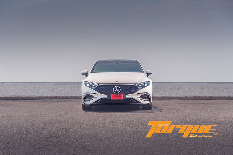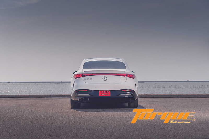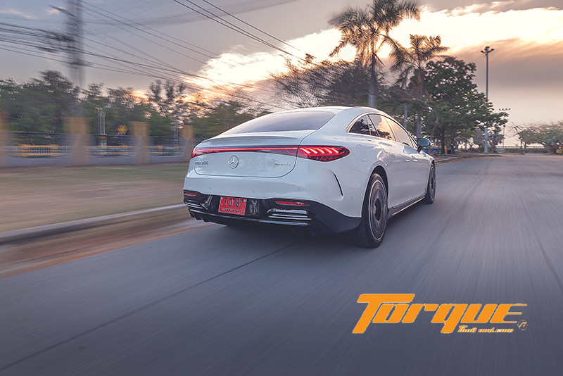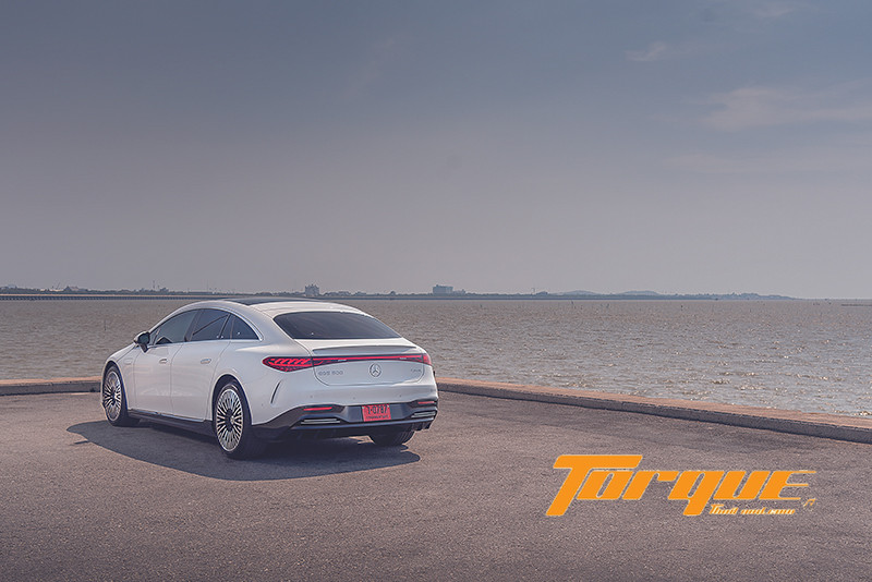 และต้องไม่ลืมว่า นี่คือรถที่อยู่ในระดับเทียบเคียงกับ S-Class ICE นั่นหมายถึง แม้ที่ความเร็วสูง EQS ยังคงให้ความรู้สึกเงียบสงบ ทรงตัวนิ่ง และสามารถดูดซับแรงสั่นสะเทือนได้ราวกับมีปาฏิหาริย์ ไม่ว่าคุณจะนั่งอยู่เบาะหลังหรือเป็นผู้ขับเอง ก็สามารถสัมผัสถึงความเป็นยนตรกรรมเหนือระดับซึ่งเป็นเรื่องถนัดของMerc ได้เด่นชัดทั้งสิ้น และแม้ตัวถังจะมีความยาวระดับ 5 เมตร