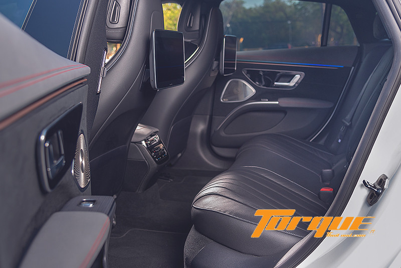 แม้มีหลังคาที่ลาดต่ำ แต่เบาะหลังก็มีพื้นที่เหนือศีรษะและโดยรอบเหลือเฟือ มาพร้อมกับ MBUX High-End Rear Seat Entertainment Plus ซึ่งประกอบด้วยจอแสดงผลขนาด 11.6 นิ้ว สำหรับผู้นั่งทั้งสองฝั่ง คุณจึงสามารถสั่งการทำงานต่างๆ อาทิ ใช้ระบบแผนที่นำทาง, ดูหนัง, ฟังเพลง และควบคุมระบบอื่นๆ ได้เกือบเทียบเท่ากับการใช้จอแสดงผลส่วนกลาง