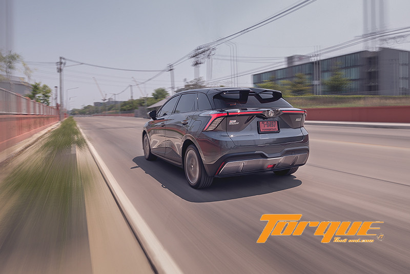 เพราะอันดับแรกเลย การทำงานของมอเตอร์ไฟฟ้า ซึ่งไม่มีรอบเครื่องมาเกี่ยวข้อง ฉะนั้นตัวเลขพละกำลัง 170 แรงม้า พร้อมแรงบิดสูงสุด 250 นิวตันเมตร ที่แม้จะดูไม่มาก แต่ก็เรียกออกมาใช้งานได้อย่างเต็มเม็ด เต็มหน่วย ลงไปที่ล้อคู่หลัง ชนิดที่เรียกได้ว่าการออกตัวจากจุดหยุดนิ่งสามารถเกิดอาการ “ฟรีทิ้ง” เบาๆ ได้เลยทีเดียว แม้จะใช้โหมดการขับขี่แบบปกติก็ตาม
