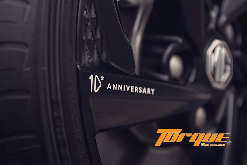 เริ่มจากจุดเด่น คือ โทนสีใหม่ของตัวถัง “สีเทา Crayon Grey” เน้นเรียบหรู พร้อมกับคุมโทนการตกแต่งในสไตล์ Monochrome (โมโนโครม) เช่น สัญลักษณ์ MG และสัญลักษณ์ครบรอบ 10 ปี (10th Anniversary) ที่มากับโทนสีดำ Glossy Black ตามด้วยล้ออัลลอยขนาด 17 นิ้ว ที่ไม่เพียงเพิ่มความสปอร์ตด้วยงานดีไซนใหม่ และโทนสีดำเท่านั้น หากแต่ยังบ่งบอกความเป็นเวอร์ชั่นพิเศษ ไว้กับลวดลายเลเซอร์สัญลักษ์ 10th Anniversary อีกด้วยเช่นกัน