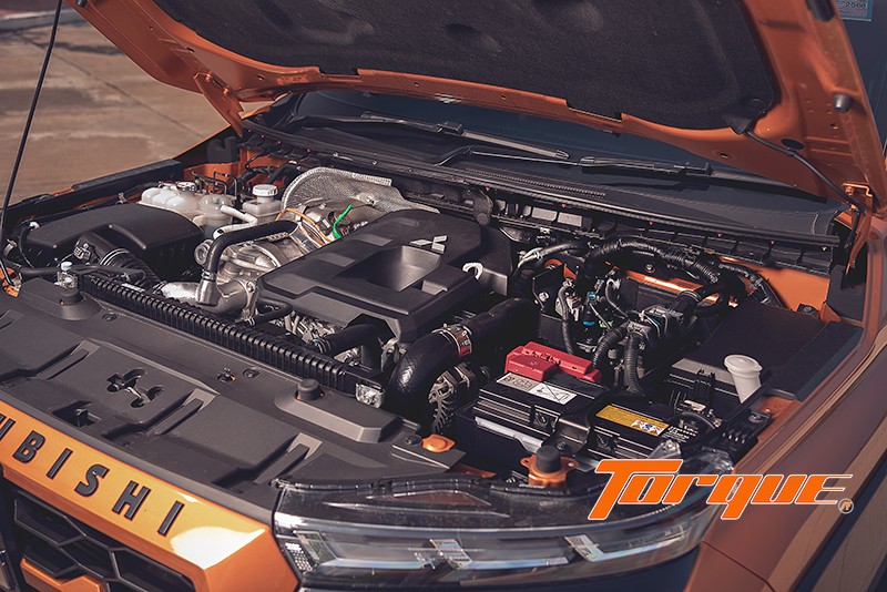 Mitsubishi Triton Athlete 4WD ขับเคลื่อนโดยขุมพลังดีเซล 4 สูบ ขนาด 2.4 ลิตร พ่วงระบบอัดอากาศ 2-Stage Turbocharged มีกำลังสูงสุด 204 แรงม้า ที่ 3,500 รอบต่อนาที กับแรงบิดระดับ 470 นิวตันเมตร ที่ 1,500 – 2,750 รอบต่อนาที ส่งกำลังด้วยเกียร์อัตโนมัติ 6 สปีด