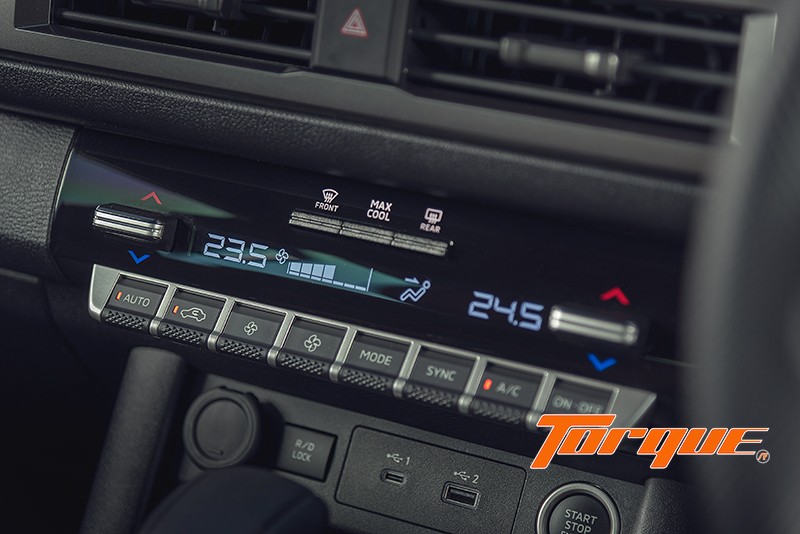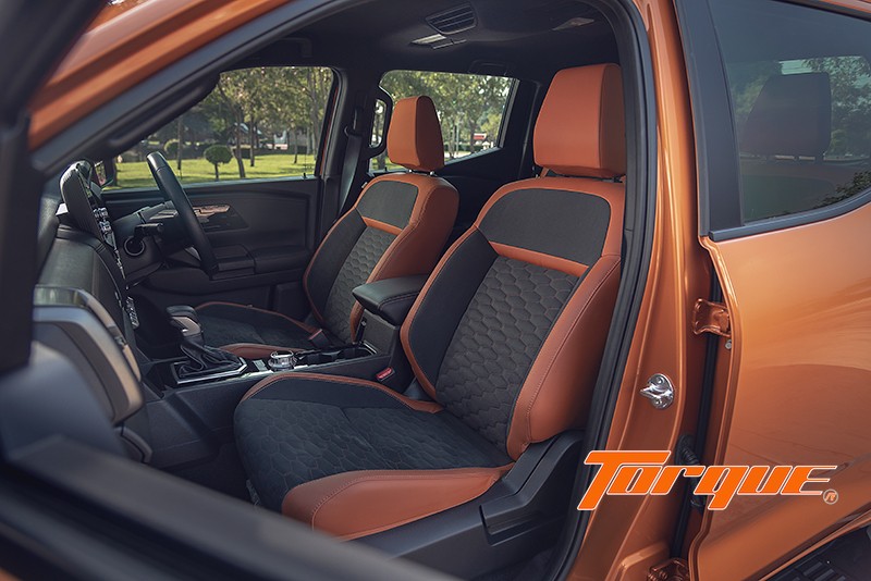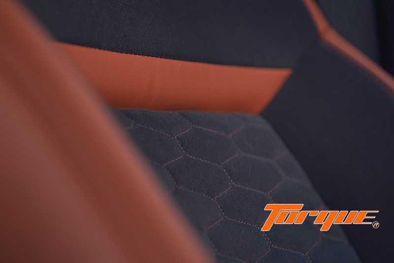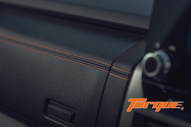 ภายในห้องโดยสาร แม้ภาพรวมจะอยู่บนพื้นฐานงานดีไซน์ที่ “คุ้นตา” แต่ดูเหมือนการให้สีสัน ตลอดจนการปรับเปลี่ยนในส่วนของวัสดุจะช่วยให้ “รสสัมผัส” ต่างออกไปอย่างสิ้นเชิง ซึ่งในจุดที่เราชอบมาก ก็คือ รายละเอียดการตกแต่งด้วยโทนสี Smoked Titanium ผสมด้วยผ้าหลังคาโทนสีดำ และความทูโทนของเบาะนั่ง ที่มากับสัมผัสสุด “ฟิน” จากวัสดุหนัง และผ้า Suede