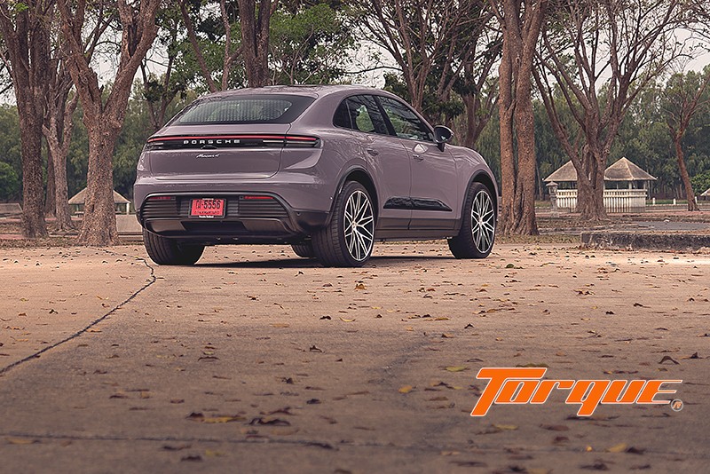 คันทดสอบของเราคือ Macan ‘4’ เกรดรองจาก ‘Turbo’ ซึ่งเป็นรุ่นแรงสุดของตระกูลนี้ มาพร้อมกับระบบขับเคลื่อนสี่ล้อด้วยการใช้มอเตอร์ไฟฟ้า 2 ชุด (สำหรับล้อคู่หน้าและหลัง) ให้กำลังรวมสูงสุด 387 แรงม้า และมีแรงบิด 650 นิวตันเมตร ร่วมด้วยระบบ Overboost เพิ่มพลังให้เป็น 408 แรงม้า เมื่อใช้ Launch Control