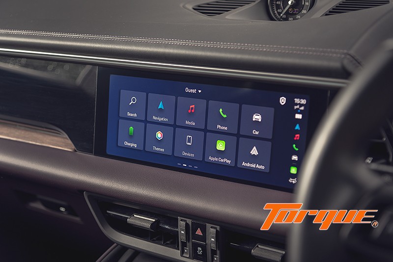 จอส่วนกลางของระบบ PCM (Porsche Communication Management) มีขนาด 10.9 นิ้ว ทำงานบนระบบปฏิบัติการ ‘Android Automotive’ ซึ่งจะเริ่มบูทเครื่องทันทีที่ผู้ขับ (พร้อมกุญแจรถ) เดินเข้าใกล้รถ นั่นหมายถึง คุณสามารถเริ่มใช้งานได้ทันทีเมื่อเข้ามาอยู่ในห้องโดยสาร รองรับการติดตั้งแอปฯ อื่นๆ ได้เช่นเดียวกับที่เราทำกับสมาร์ตโฟน ผ่าน Porsche App Centre นั่นหมายถึงคุณสามารถใช้งานแพลตฟอร์มออนไลน์ต่างๆ ได้จากหน้าจอของ Macan ระบบปฏิบัติการใหม่นี้ รองรับทั้ง Android Auto และ Apple CarPlay ที่พิเศษคือสามารถแสดงแผนที่ของ Google Map หรือ Apple Map ขึ้นบนจอแสดงผลของผู้ขับได้อีกด้วย